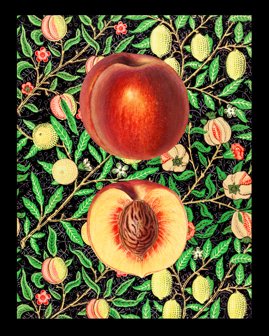 Cuadros ideales para rincones que invitan a sentarse a la mesa y compartir. Los reconocidos patrones hipnóticos de William Morris contrastan con increíble encanto con estos frutos de la naturaleza, aportando vida, color y personalidad a cada rincón de tu lugar favorito para comer.