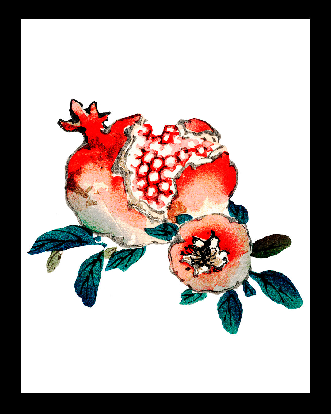 Cuadros ideales para rincones que invitan a sentarse a la mesa y compartir. Captura la esencia del fruto más seductor de la temporada en esta ilustración de estilo asiática que desafía la sutileza. Una granada exuberante y detallada emerge. La técnica realista resalta cada textura, cada curva del fruto, perfecto para quien se atreve a llevar la naturaleza a sus espacios con una dosis de modernidad atrevida y sofisticación visual.