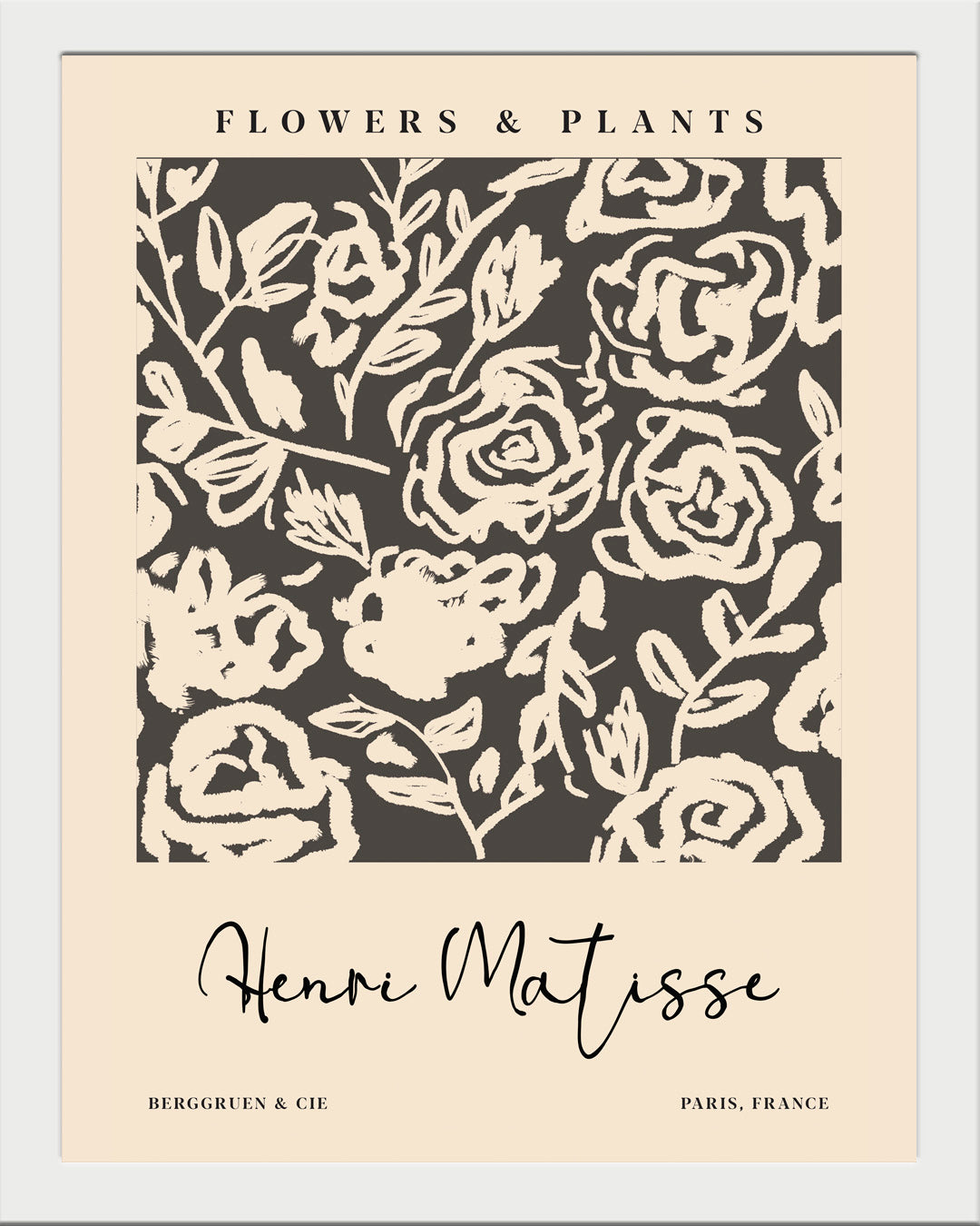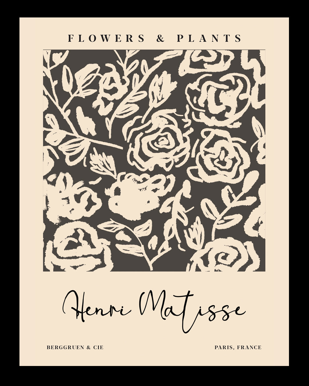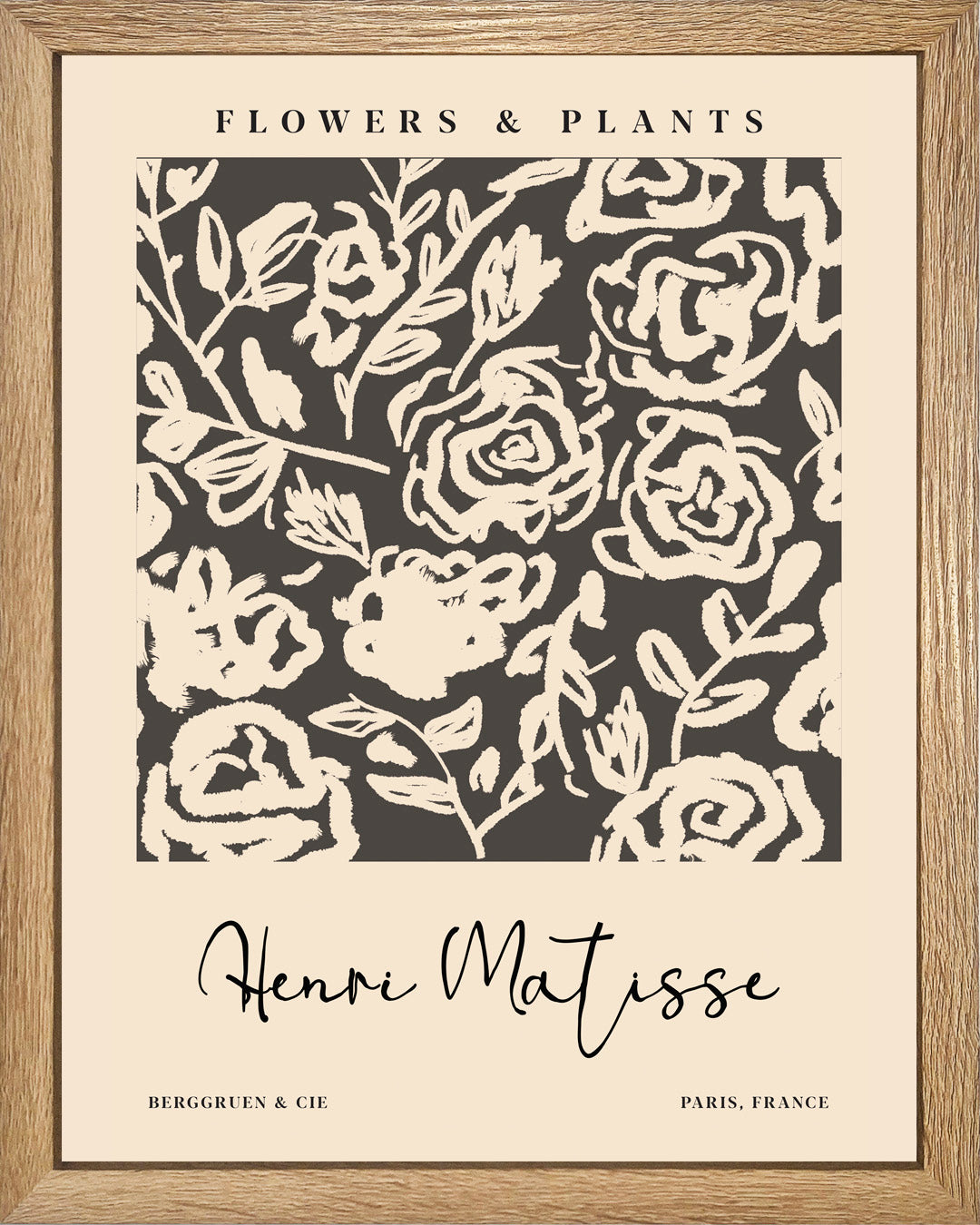 Descubre la elegancia minimalista en Jardín de rosas, inspirado en el icónico estilo Matisse. Esta pieza presenta una suave ilustración de flores y plantas que trae calidez y serenidad a cualquier espacio. Con líneas limpias y una paleta armoniosa, es el complemento perfecto para crear un ambiente sofisticado y acogedor en tu hogar. Una obra de arte que celebra la belleza natural con un toque contemporáneo.